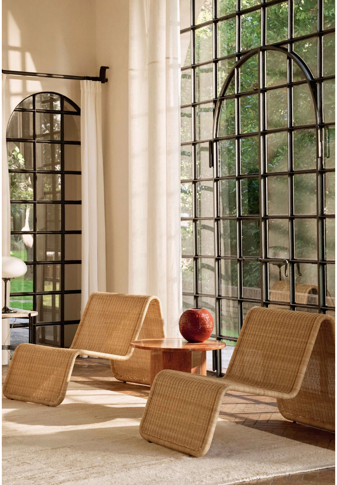 Designed in 1964 by architect and designer Tito Agnoli for the Italian masters of rattan craft, Bonacina 1889, the P3 Lounge Chair combine sculptural elegance, playful expression, and ergonomic comfort. Formed from handwoven rattan strips fixed to a tubular steel frame, the P3 represent the highest level of rattan craft, beautifully showcasing the material’s natural warmth and texture.