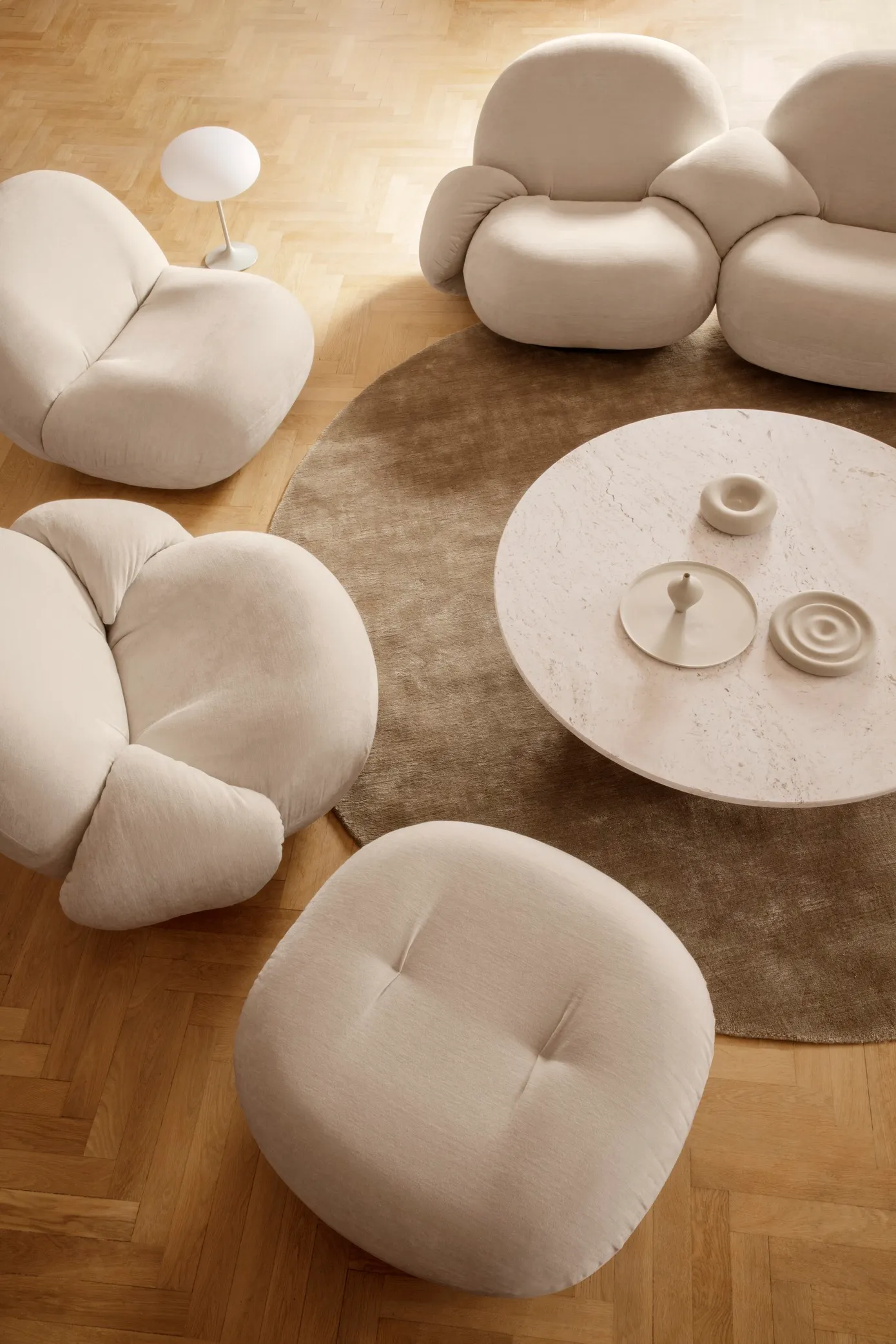 Legendary French designer Pierre Paulin originally designed the Pacha Lounge Chair in 1975. Paulin designed the chair in harmony with the changing design style of its period, replacing the austerity of post-war design with a new, vigorous approach. Paulin managed to give a real elegance to the rounded forms of the Pacha Lounge Chair by finding the perfect proportions, raising it lightly on its base and tracing in the foam and upholstery with stitching lines inclined inwards. Through pieces like the Pacha Lounge Chair, Pierre Paulin pioneered low-level living; a modern way of living and sitting on the floor, by getting rid of chair legs. With comfort as the constant starting-point in his designs, the curvaceous, whimsical and organic shapes of the Pacha Chair are conceived to serve the body, providing both comfort and cosiness. Looking at contemporary today as when it first was designed, the Pacha Lounge Chair is an honest, functional piece that brings life and character to any interior setting.