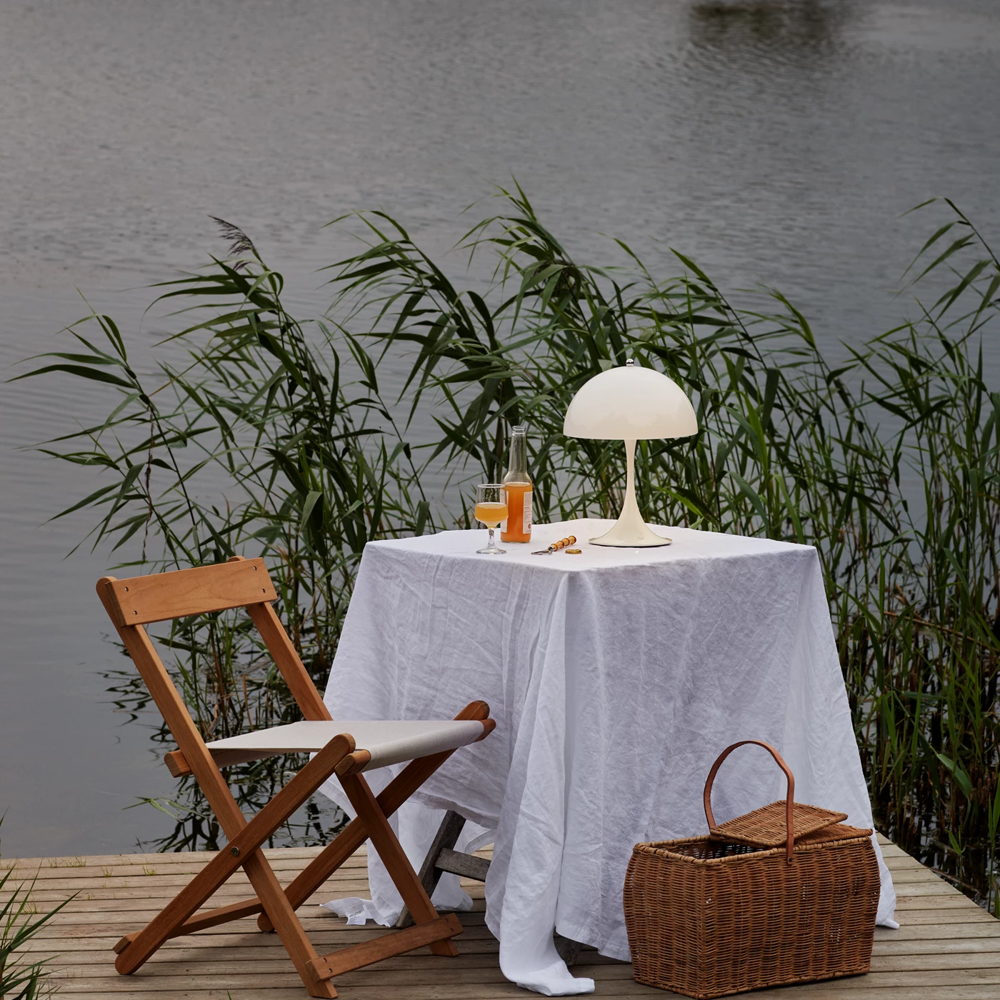 The Panthella 160 Portable lamp is a downscaled version of the original design. The lamp is only 160 mm in diameter, making it the perfect size to take from room to room or outside on the balcony or in the garden, where it will look amazing and create a wonderful ambience.