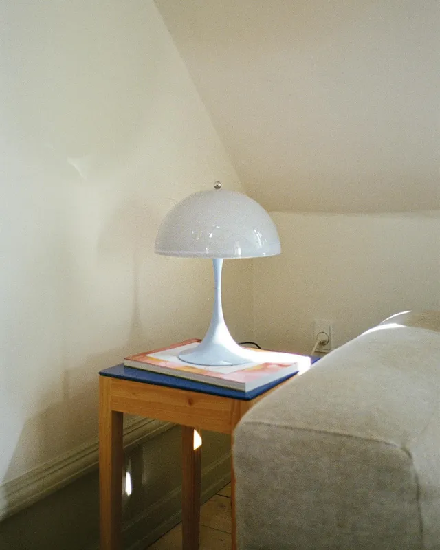 The Panthella 160 Portable lamp is a downscaled version of the original design. The lamp is only 160 mm in diameter, making it the perfect size to take from room to room or outside on the balcony or in the garden, where it will look amazing and create a wonderful ambience.