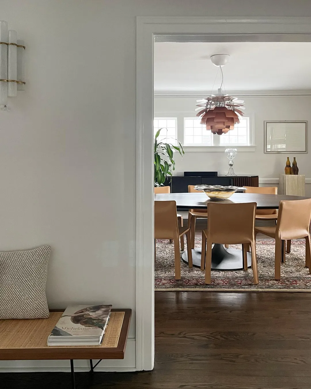 The pendant illuminates any space with a 100% glare-free light due to the 72 leaves, which form 12 precisely positioned rows that hold six leaves each. The fixture ensures the light is distributed inwards as well as outwards, thereby emitting a beautiful and comfortable light. Moreover, the high quality of light is maintained in the energy efficient LED variant that creates the same renowned atmosphere around the pendant.