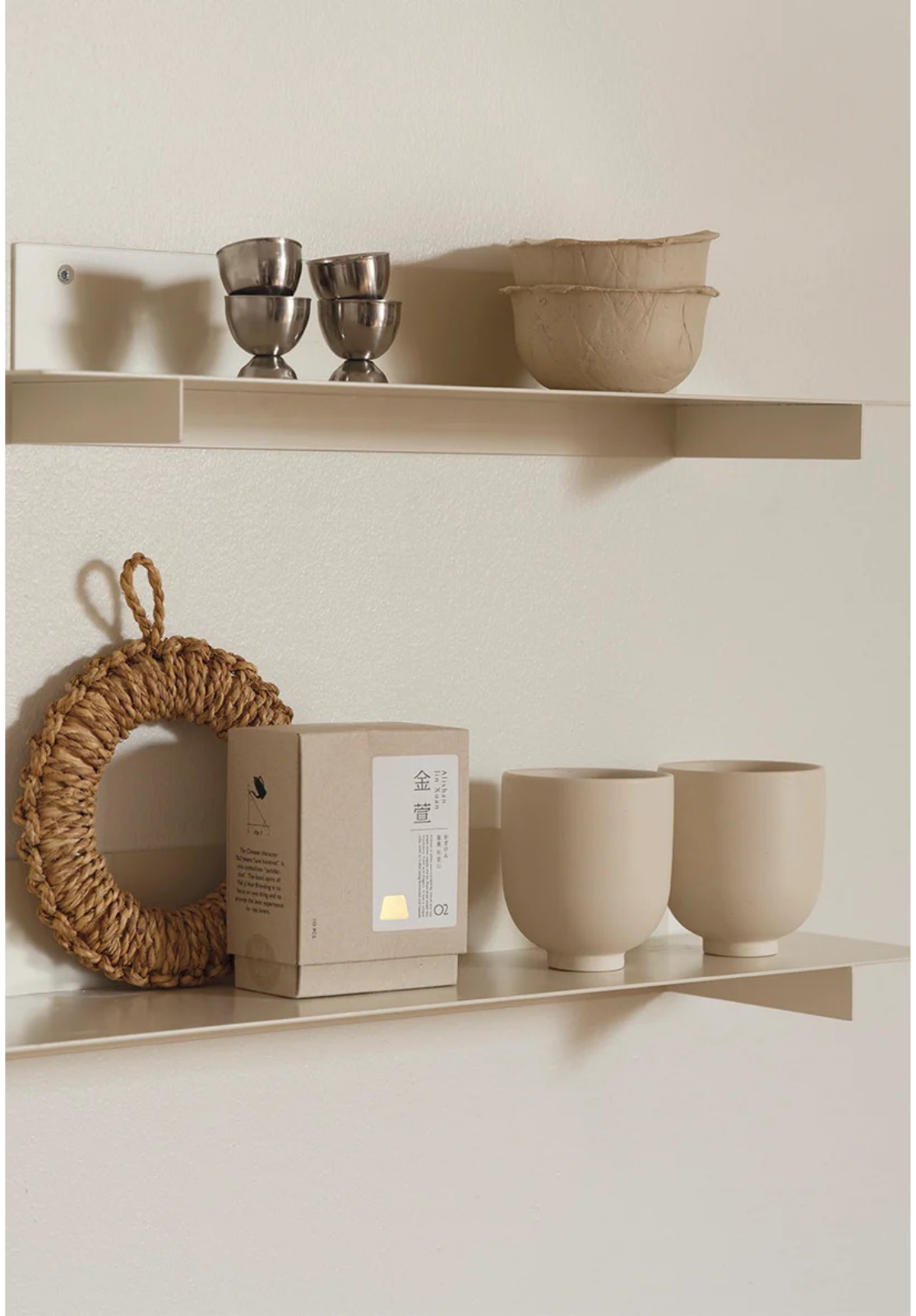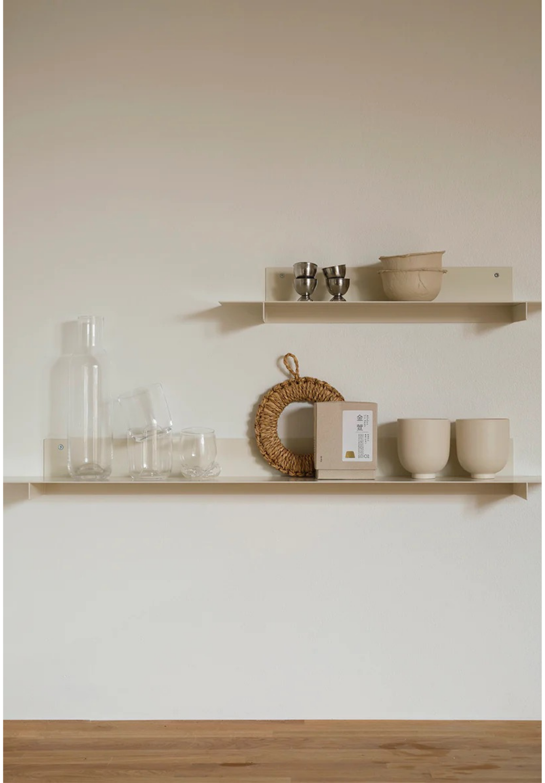 Planar Wall Shelf is defined by a clean linear expression and is crafted from a single sheet of metal, cut and folded to form the shelf. The construction results in a reduced and balanced expression, appearing visually light with clear structural precision. Available in sizes S and M and offered in powder-coated metal or brushed stainless steel, the material presents either a calm, matte character or a more industrial, reflective quality. A wall-mounted shelf defined by simplicity and clarity of form.