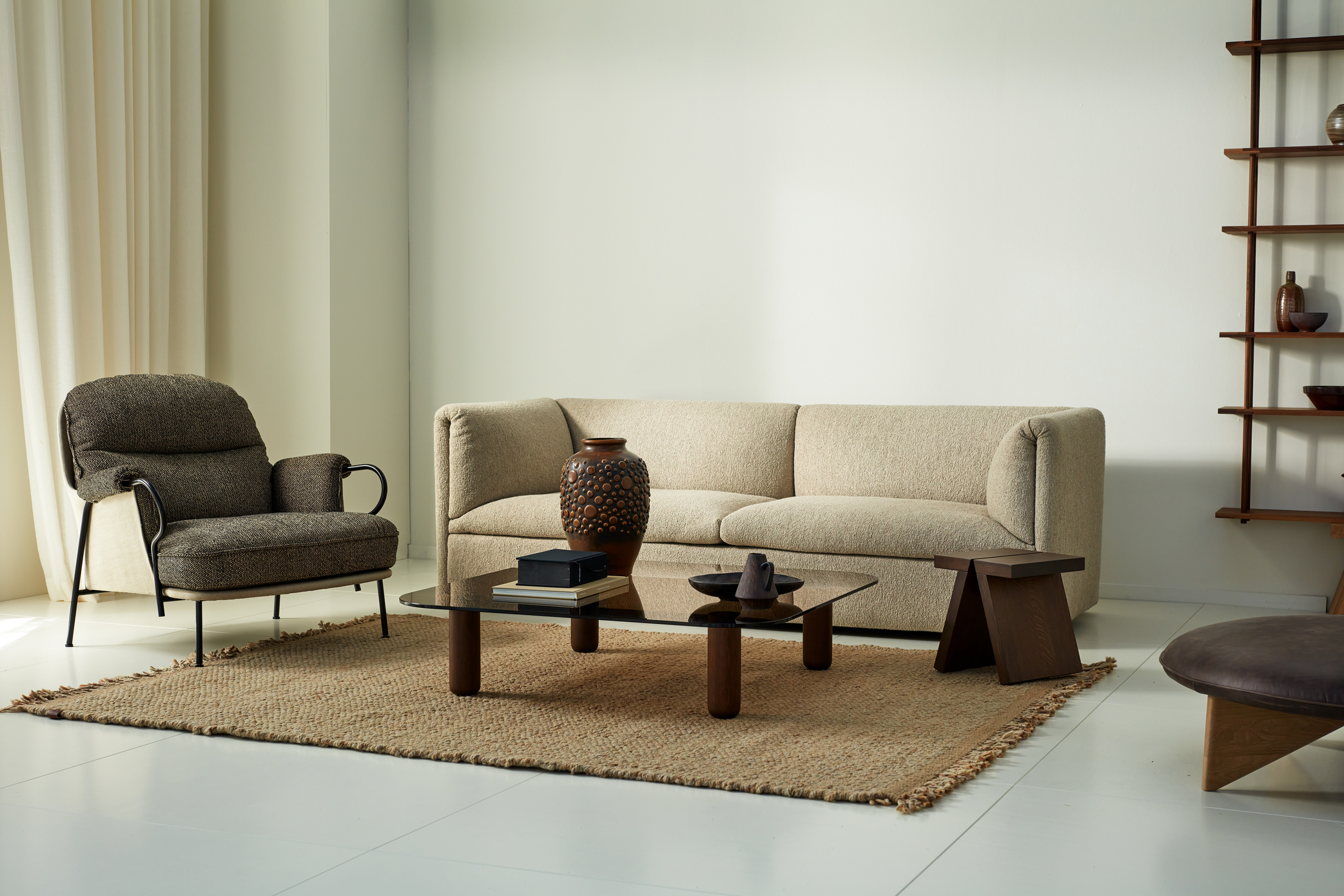 The ‘Retreat’ collection, designed by Monica Förster combine the perfect dosage of modern design and understanding of timeless elements. The sofa is characterised by its strong construction with sleek lines that create a framework for voluminous cushions. The low proportions and wide armrests, as well as a deep seat, help to add a delicious lounge feel with great seating comfort. Nordic simplicity is at the heart of the ‘Retreat’ range, which shines through in its universal design, implying calm lines and neutral colours.