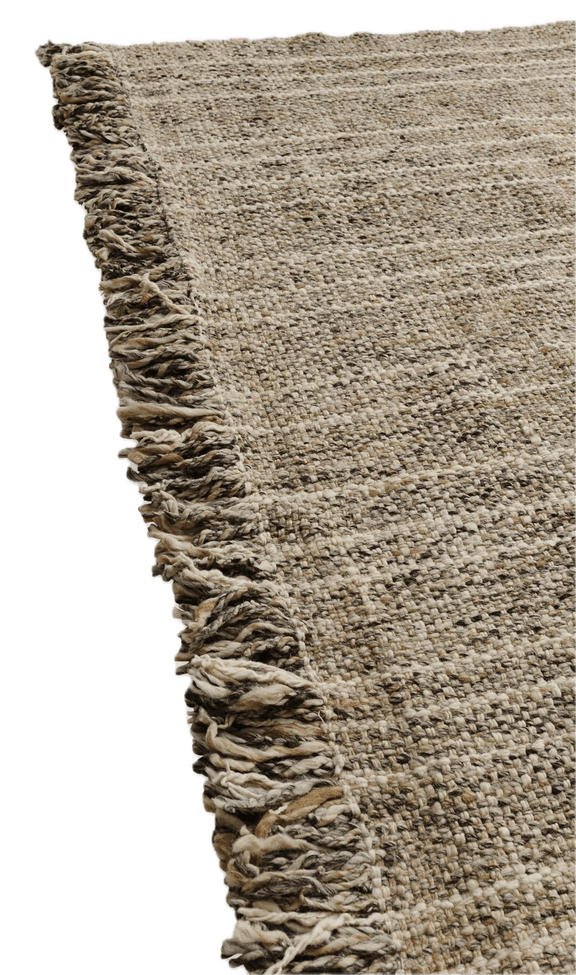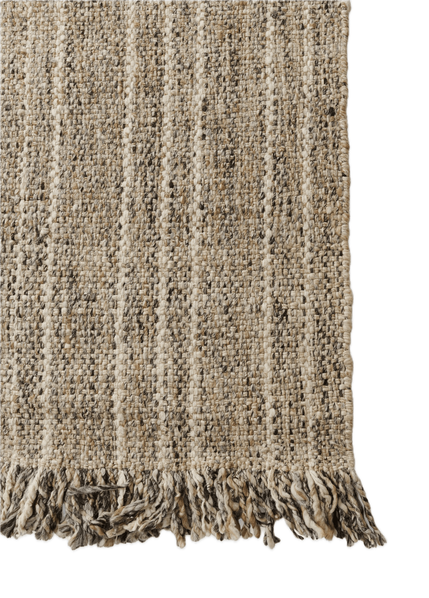 Rug no.20 is a hand-woven wool rug with a mid beige melange foundation with a soft sandy shaded stripe, creating a harmonious and delicate effect.