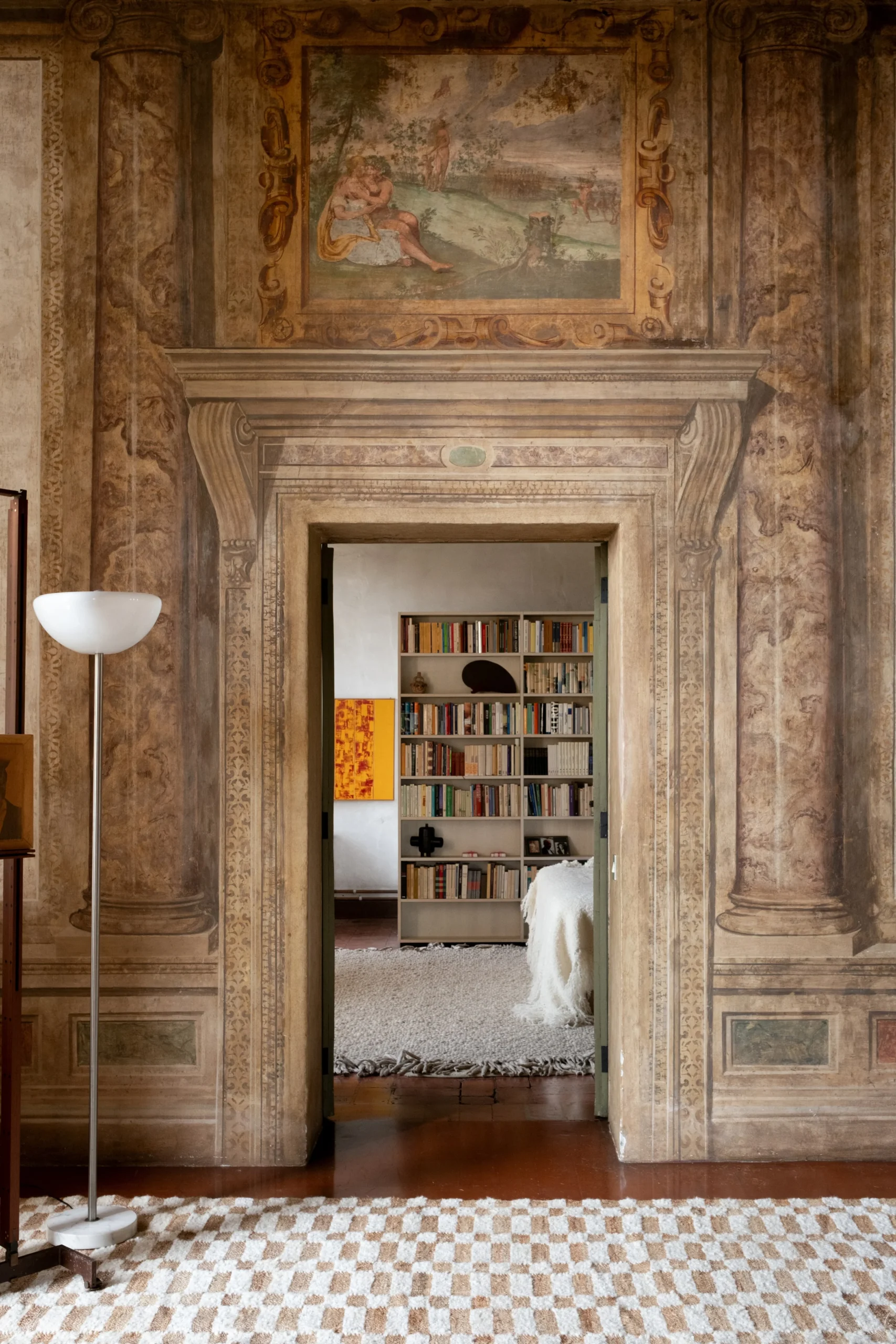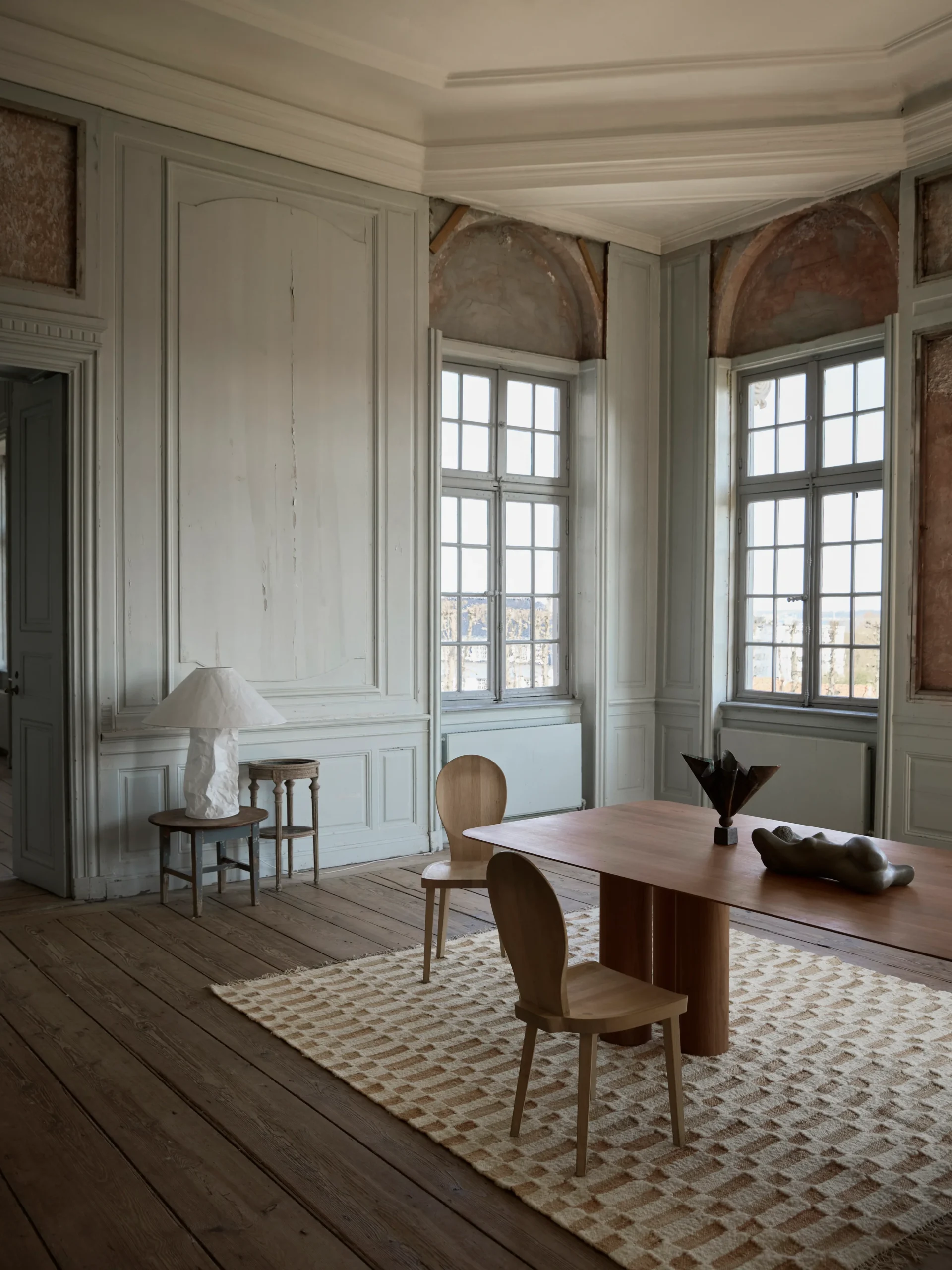 no. 23 features a checkered pattern that combines natural jute with slub yarn in white natural wool. The mix of jute and slub yarn creates a three-dimensional look and feel, adding a unique touch to its classic, timeless design.