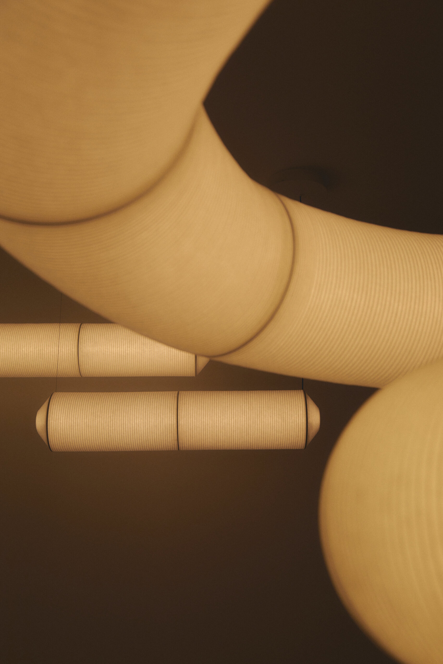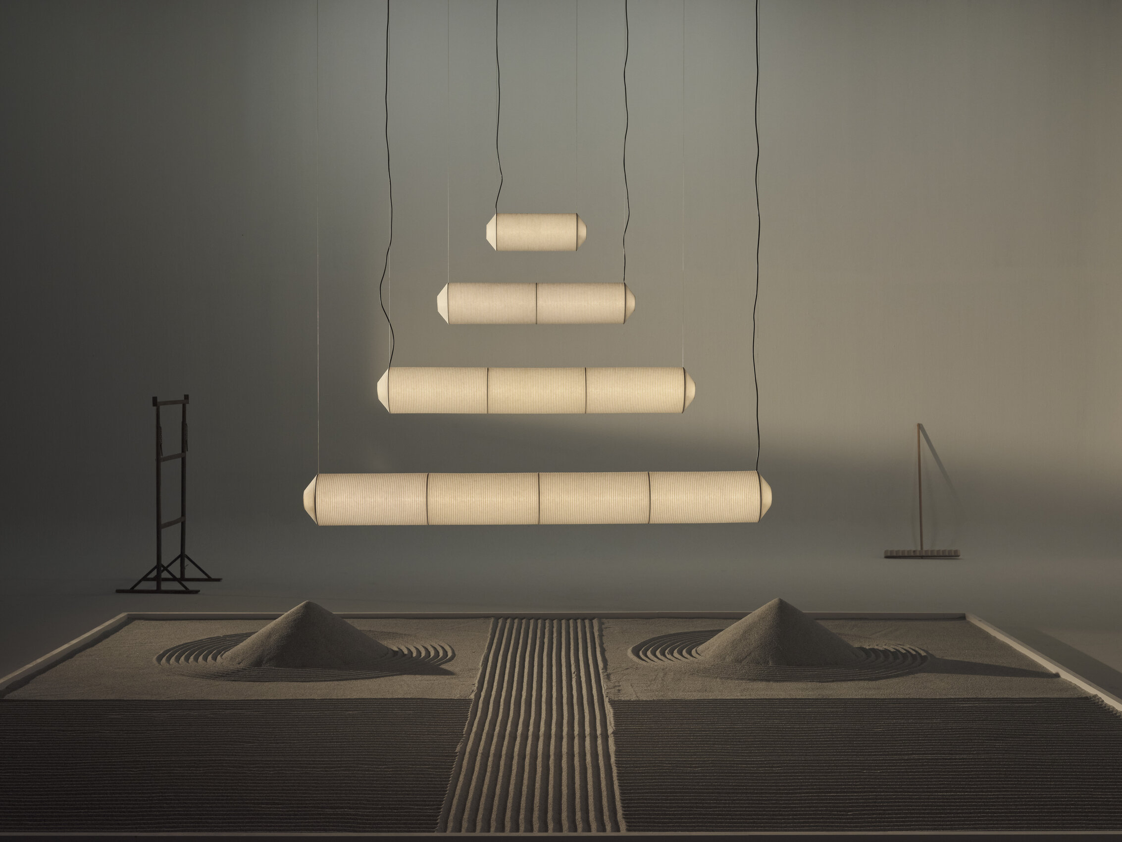 Tekiò, the Japanese word for adaptation, merges ancient artisan techniques with Warm to Dim LED technology that enables control of intensity and colour temperature. Tekiò’s highly technical lighting structures are carefully dressed in handmade paper. Depending on the chosen combination, different linear or circular shapes of various sizes can be achieved.