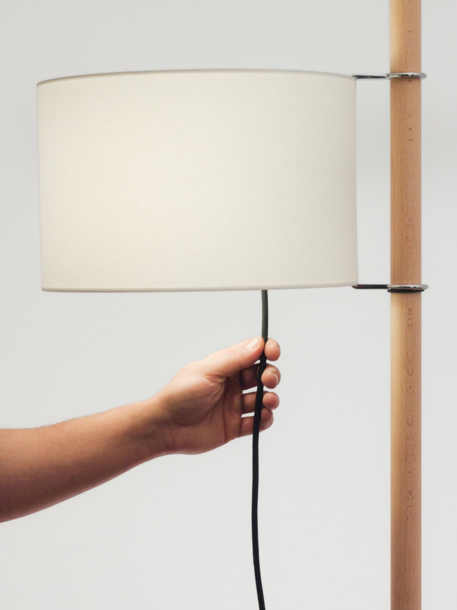 In a flourish of formal serenity and functional efficacy, Miguel Milá cleverly separated the three basic components of any lamp: the structure, the electrical parts and the shade. The light source rotates around the shaft and can be raised or lowered like a flag on a mast.