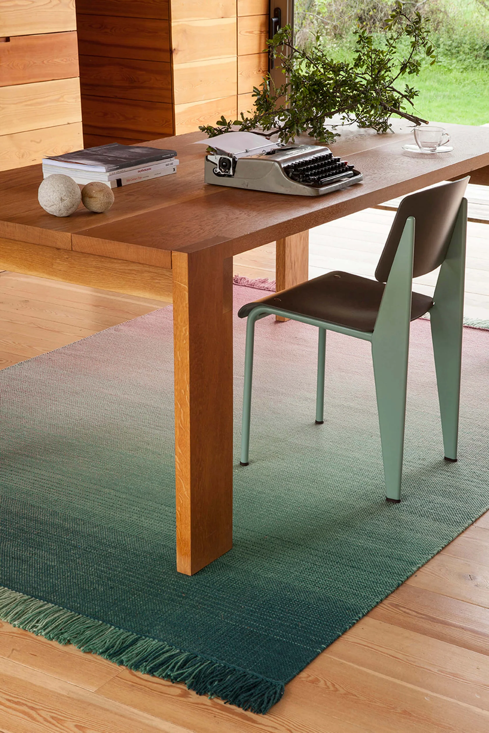 The Shade collection is inspired by the magical moments of nature, where colors blend together and speak for themselves. Designer Begüm Cana Özgür highlights: “This is a hand-made, flat-woven rug that creates an incredible, round spread of color. The surface exudes a sense of calm and well-being that is balanced by the pervasive vibrancy of colours.”