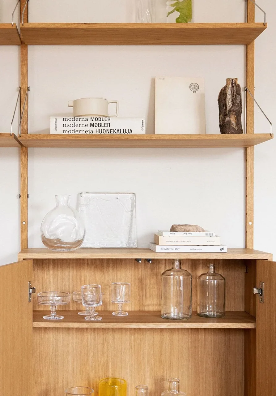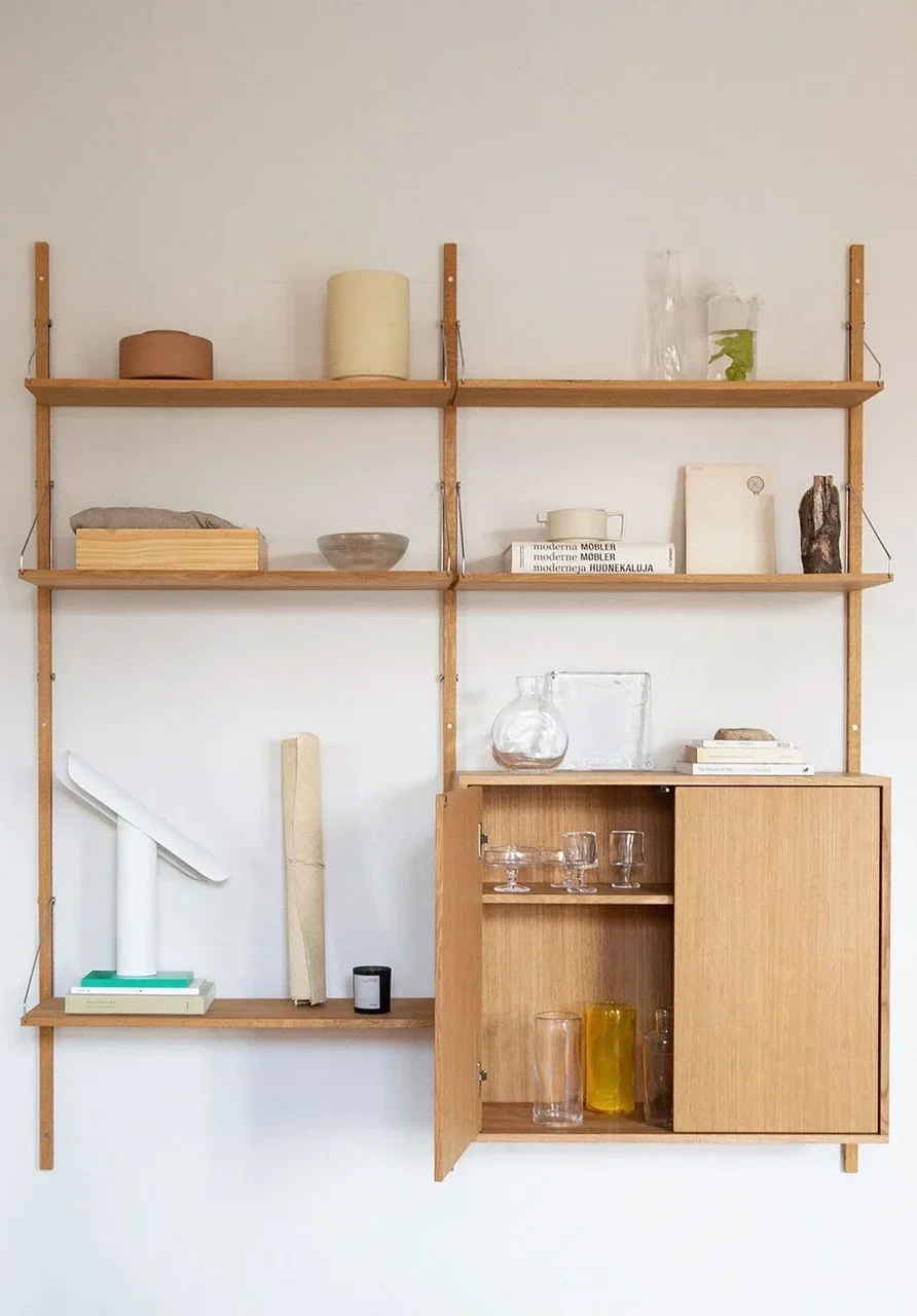 A natural extension of Frama’s versatile Shelf Library universe, the Shelf Library Cabinet was designed to seamlessly integrate into the Shelf Library system. The cabinet can be easily styled in various ways thanks to its modular configuration using solid steel screws on oak rails.