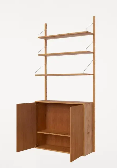 • Material: Solid oak rails, shelves and structure, veneer doors, stainless steel brackets and screws