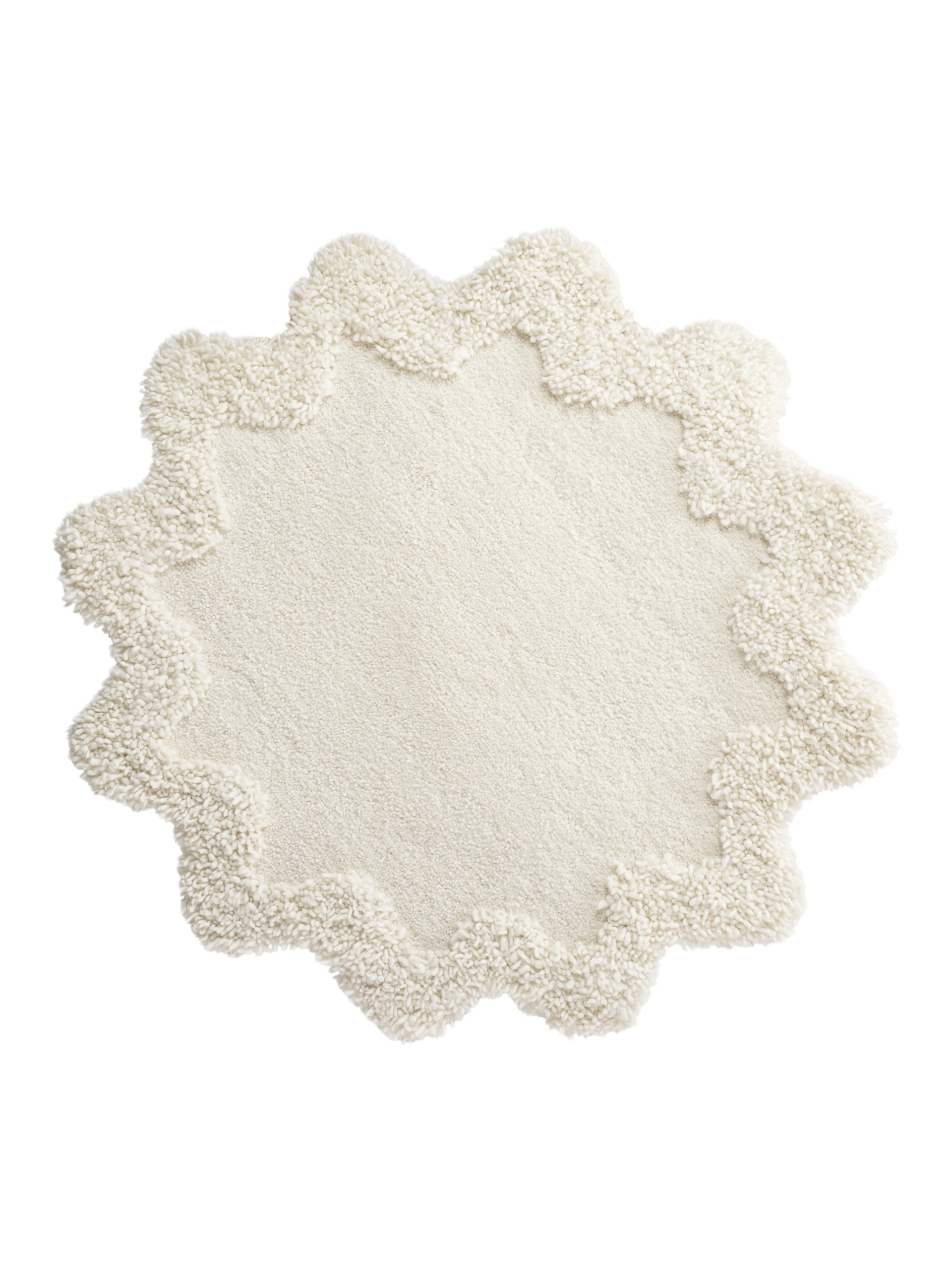 Introducing Snowflake, our very first Christmas tree rug, crafted to bring warmth and elegance to your holiday decor. Snowflake fits beautifully beneath your Christmas tree, creating a cozy and festive ambiance for the season. Hand tufted in naturally hand-spun yarn, this rug features a unique curled texture and slightly raised edges, adding a charming framed effect that enhances its design.