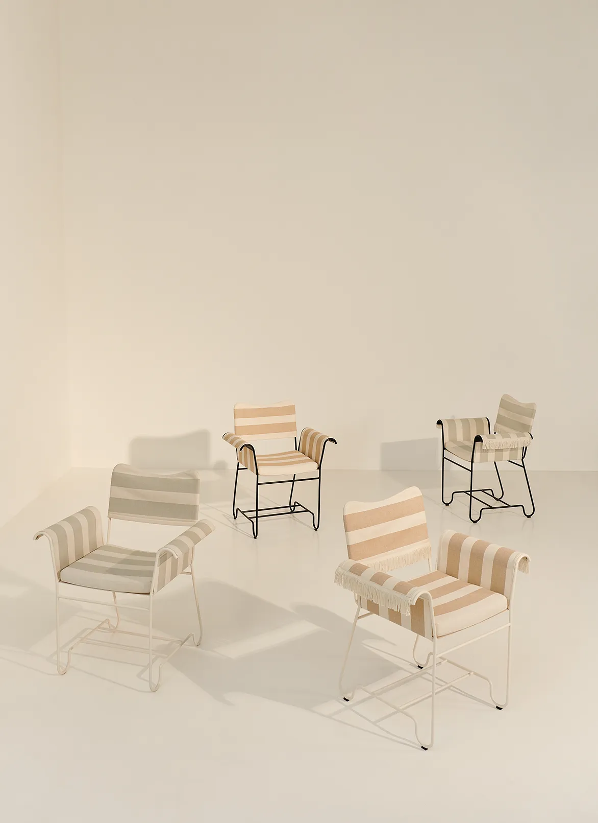 Combining material simplicity with a decadent aesthetic, the Tropique Collection comprises two dining chairs and a dining table. The frame of each piece is made from stainless steel rods, incorporating a distinctive statement curve at the feet – a signature of Matégot’s style and a feature that unites the collection into a clear and cohesive whole.