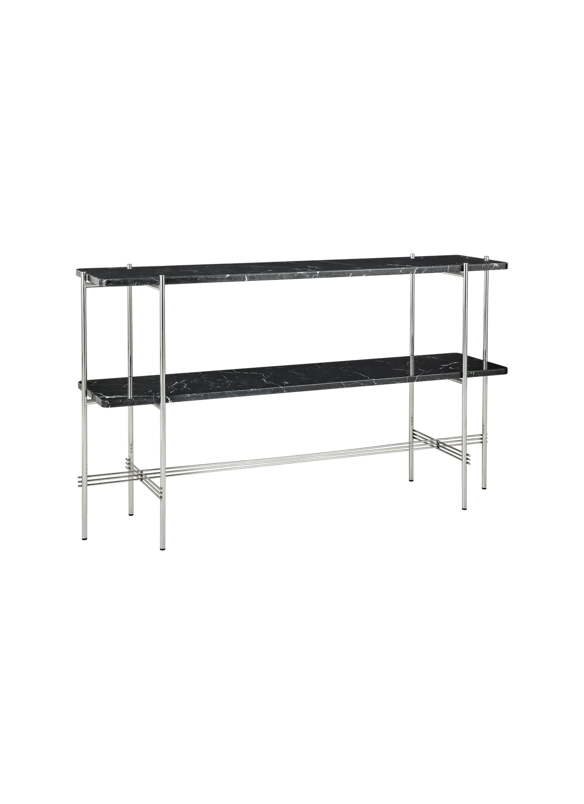 The TS Console creates a sophisticated and sculptural aesthetics for any room with its characteristic slender legs, beautifully crossing details and contrasting solid table top. The rectangular console serves equally well as a storage unit, serving station or media console, featuring either one or two table tops. The timeless TS Console by GamFratesi is extended from the classic TS Table, made for the renowned restaurant The Standard in Copenhagen, where not only its name got its inspiration but also aesthetics and material choices were found.