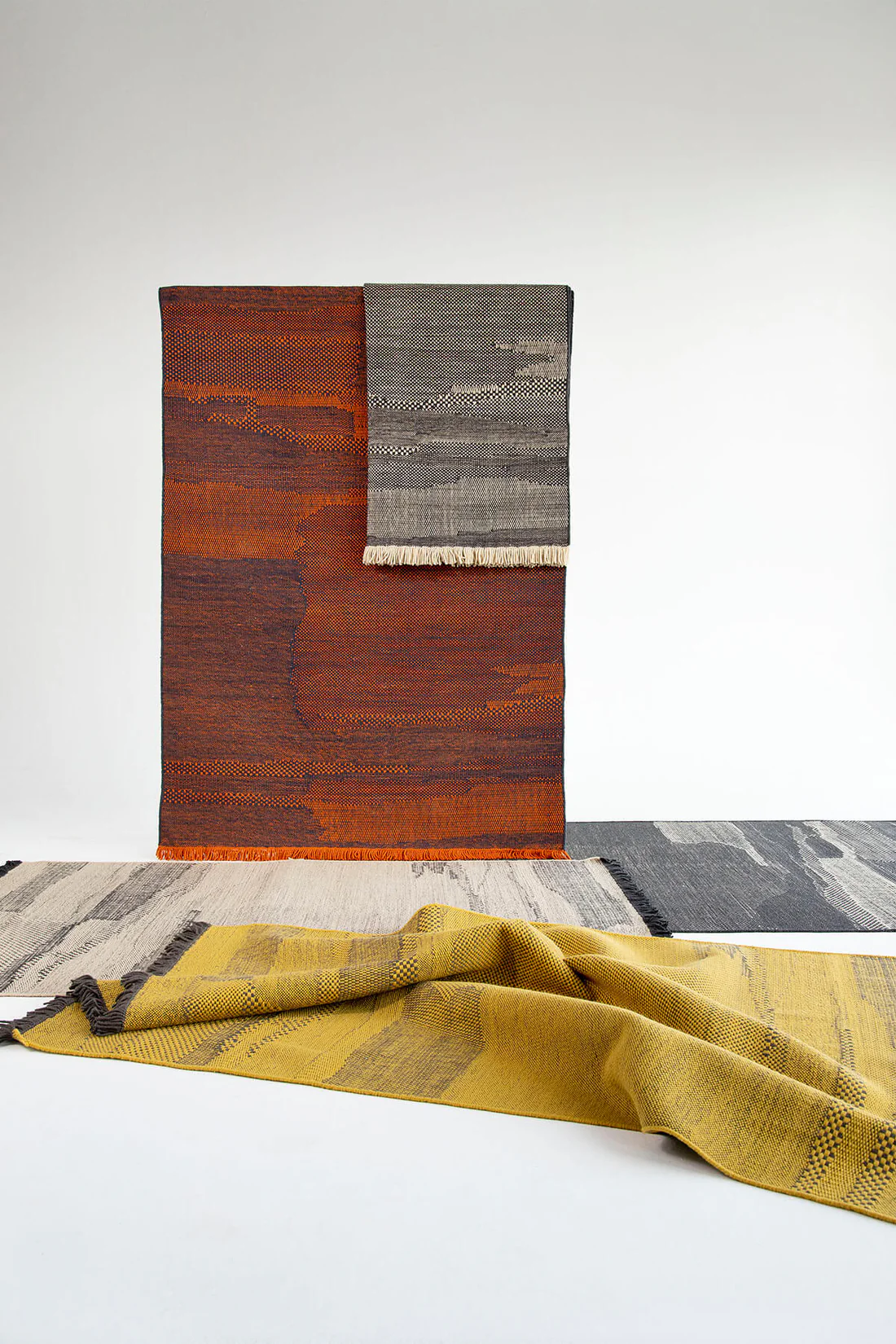 Each Wabisabi rug is the result of weaving, experimenting, making mistakes, and finding joy in the process. By skilfully adjusting the warp and weft, we create visual textures and rhythms that intertwine to form an imperfect yet exquisite wavy pattern. These subtle irregularities add character and depth to each rug, inviting the viewer to appreciate the beauty in imperfection. We further emphasize this concept by consistently utilizing two contrasting colors, enhancing the visibility of these changes.